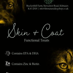 These treats contain Omega 3 and 6 fatty acids which help to promote healthy skin and a shiny coat.